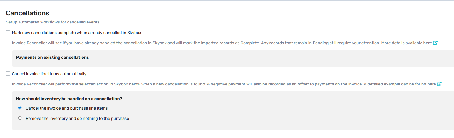 - Mark new cancellations complete when already cancelled in SkyBox - Reveal can see if you've processed the cancellation directly in SkyBox and then mark the cancellation as Complete so you don't have to extra or repetitive work.